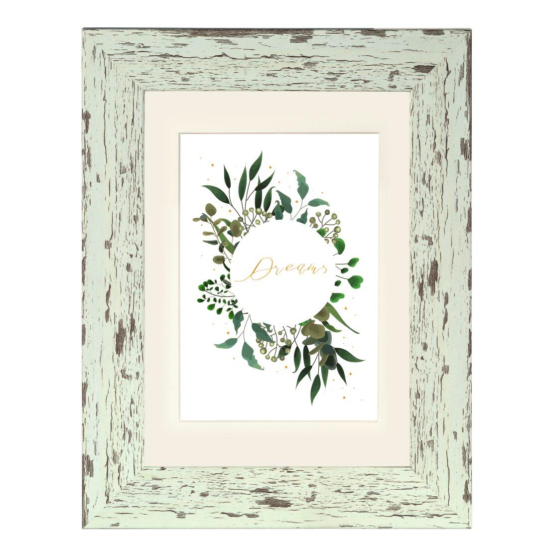 moderní rámeček s ošuntělým vzhledem (shabby look) a s kvalitní vysekávanou paspartou se šikmým bílým řezem